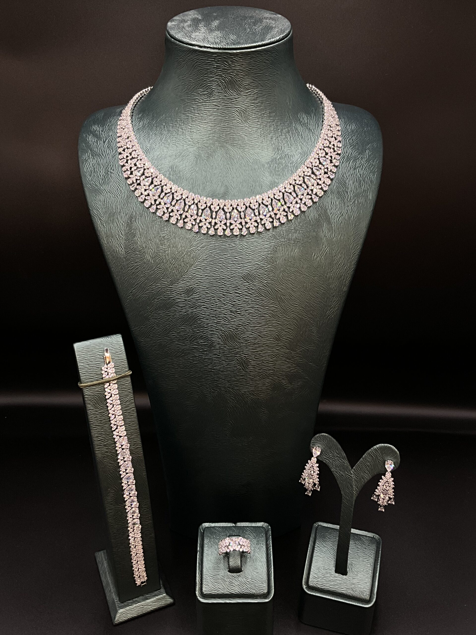 Set includes: Necklace, earrings, ring, and bracelet