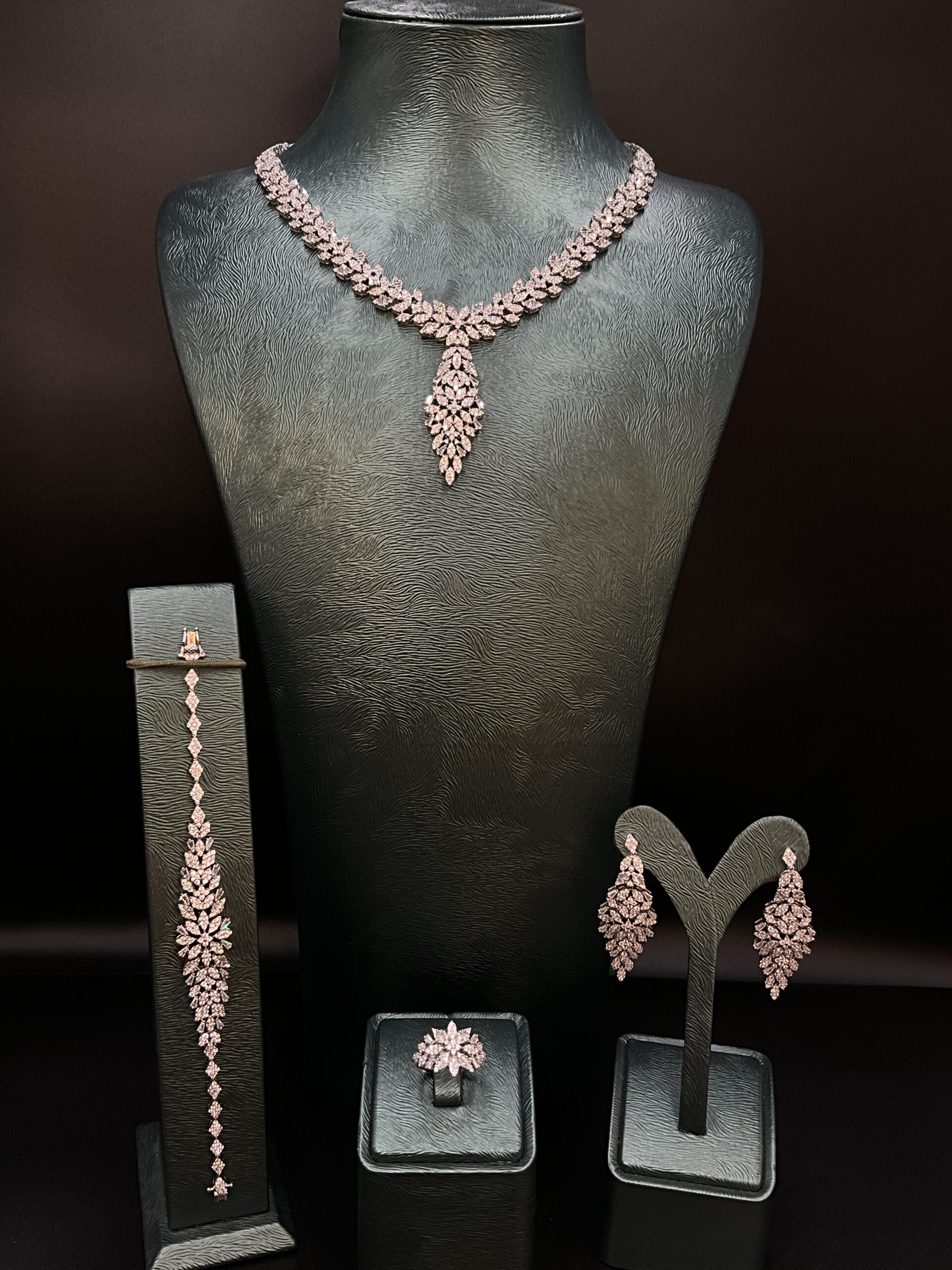 Set includes: Necklace, earrings, ring, and bracelet