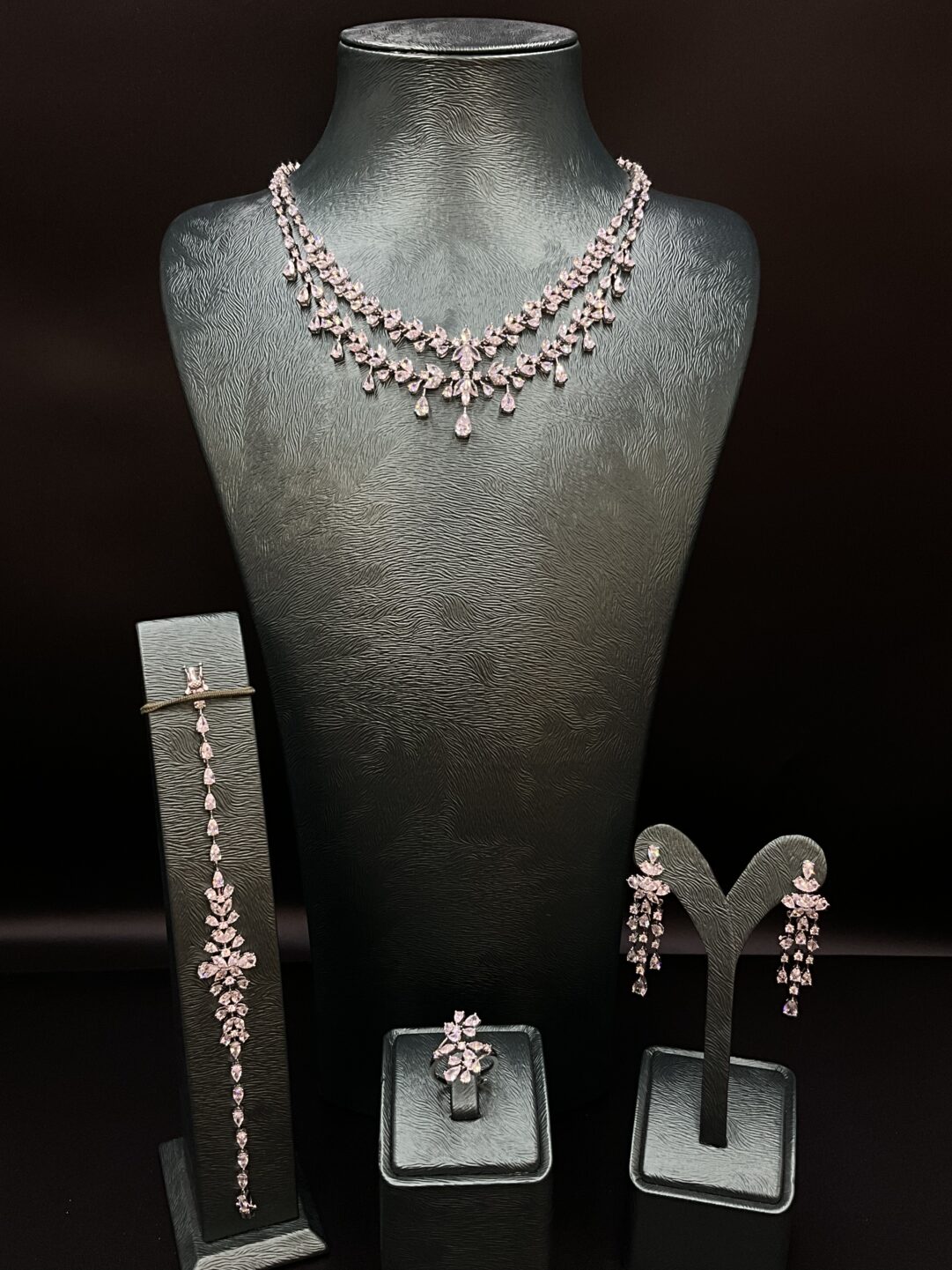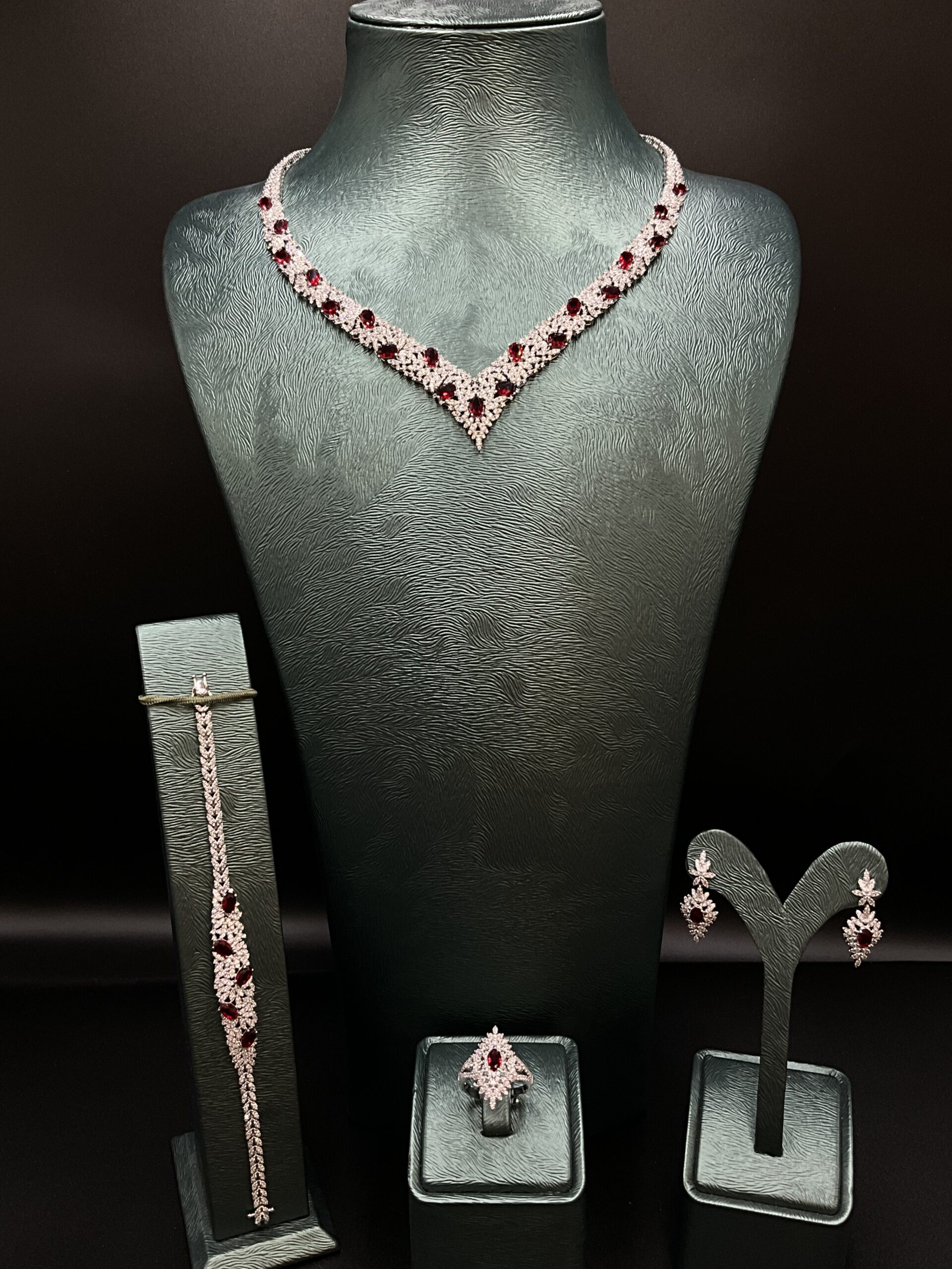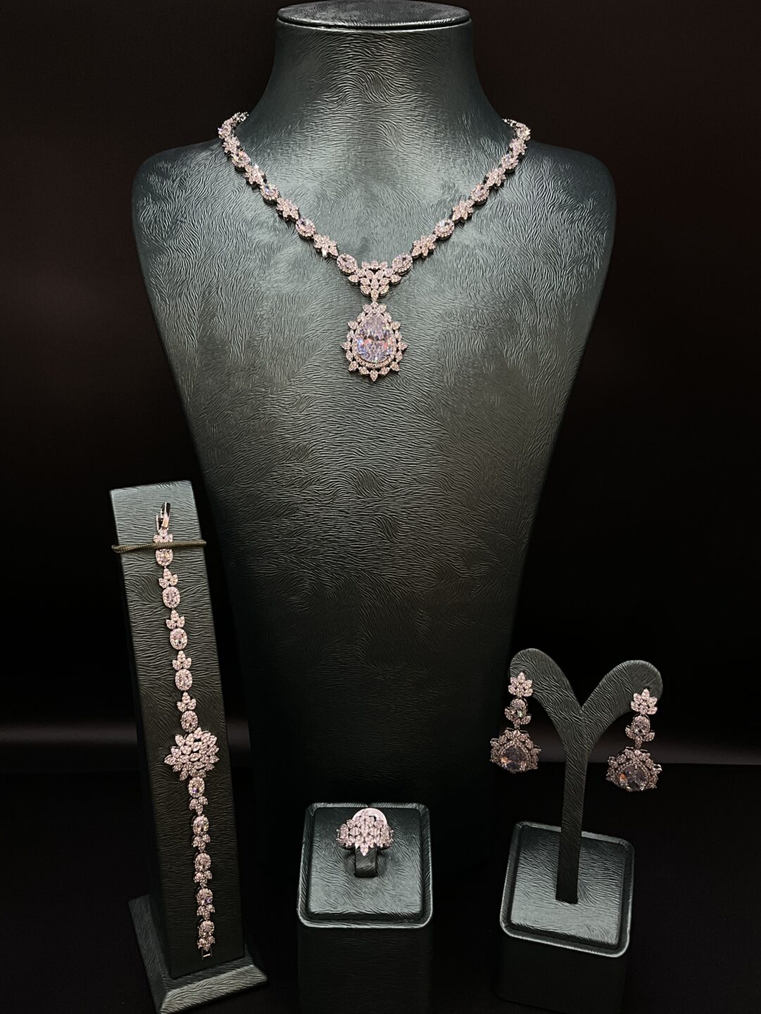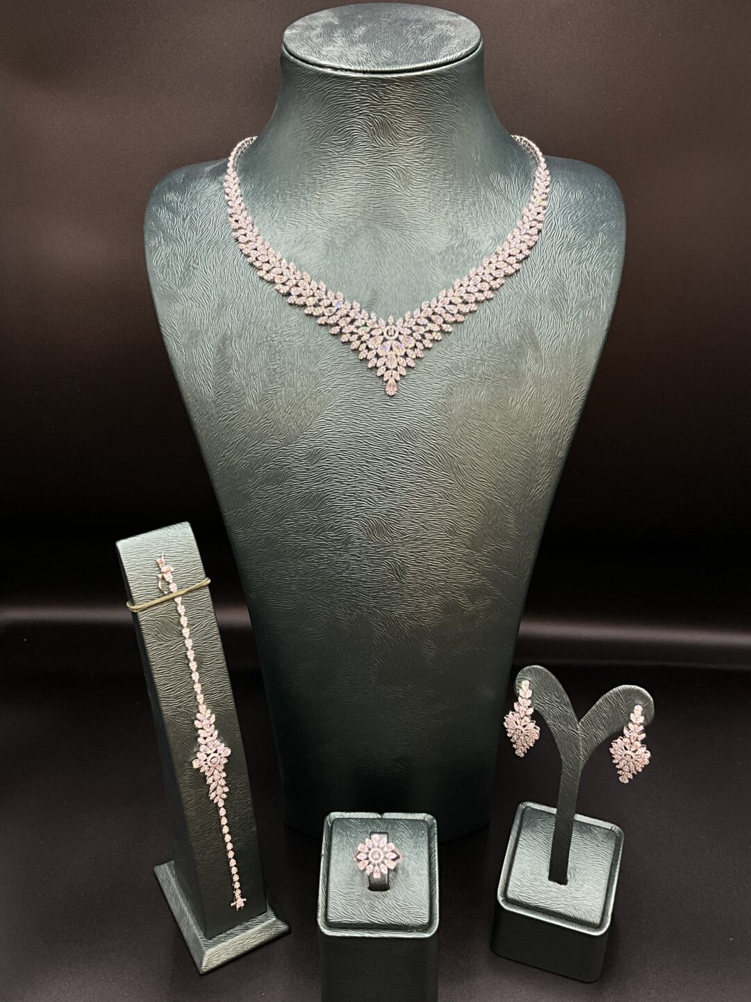 Set includes: Necklace, earrings, ring, and bracelet