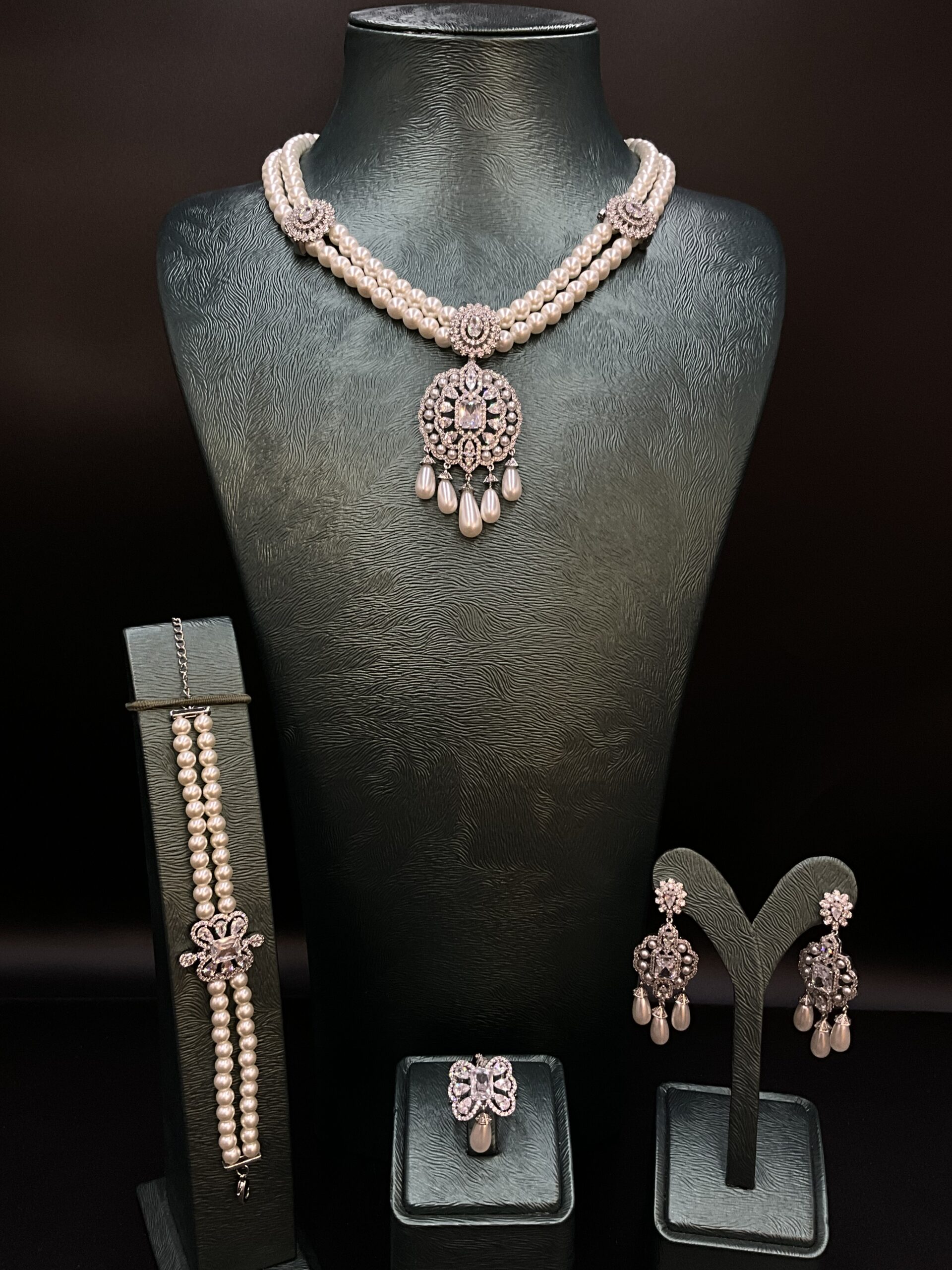 Set includes: Necklace, earrings, ring, and bracelet