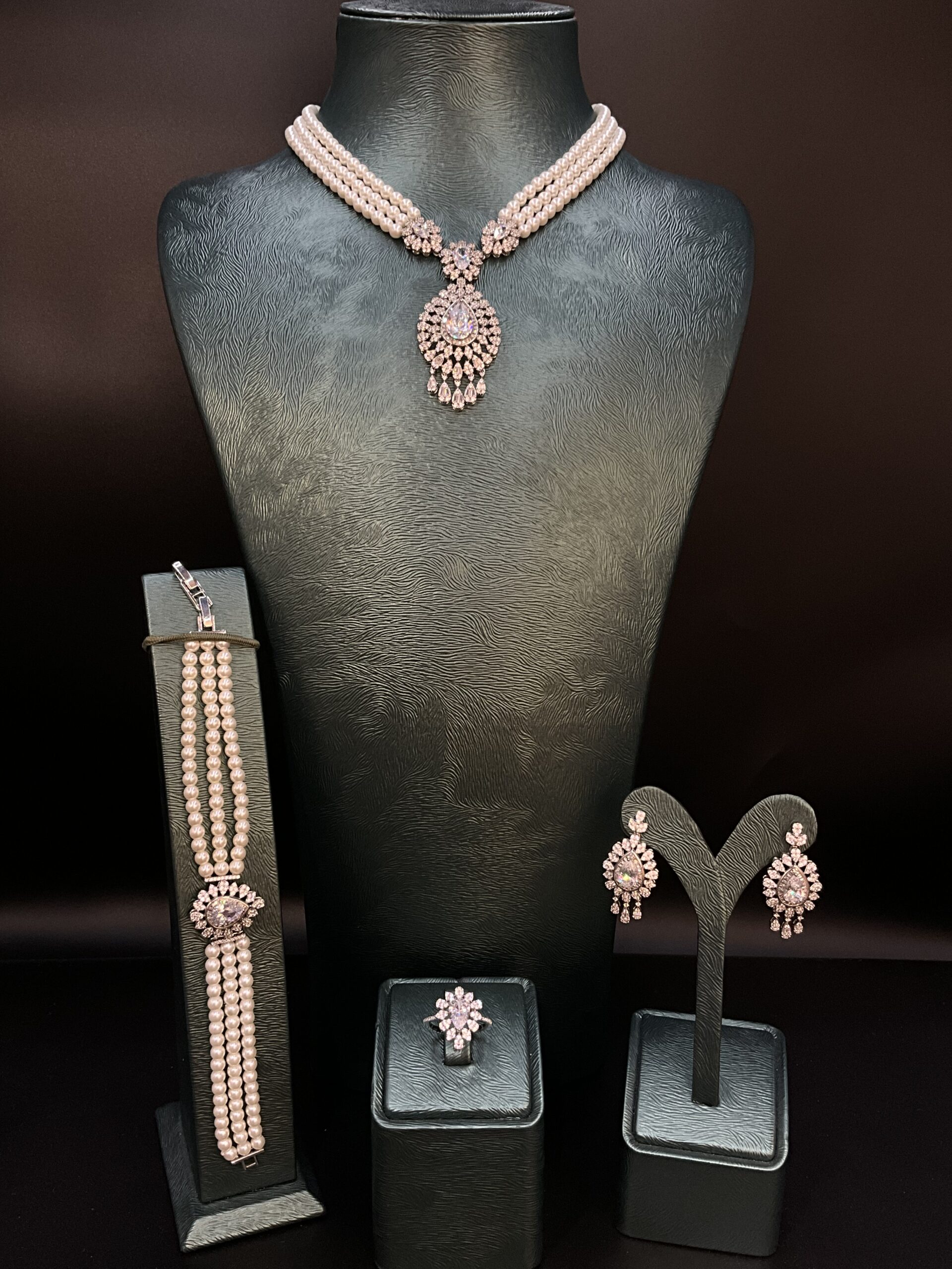 Set includes: Necklace, earrings, ring, and bracelet