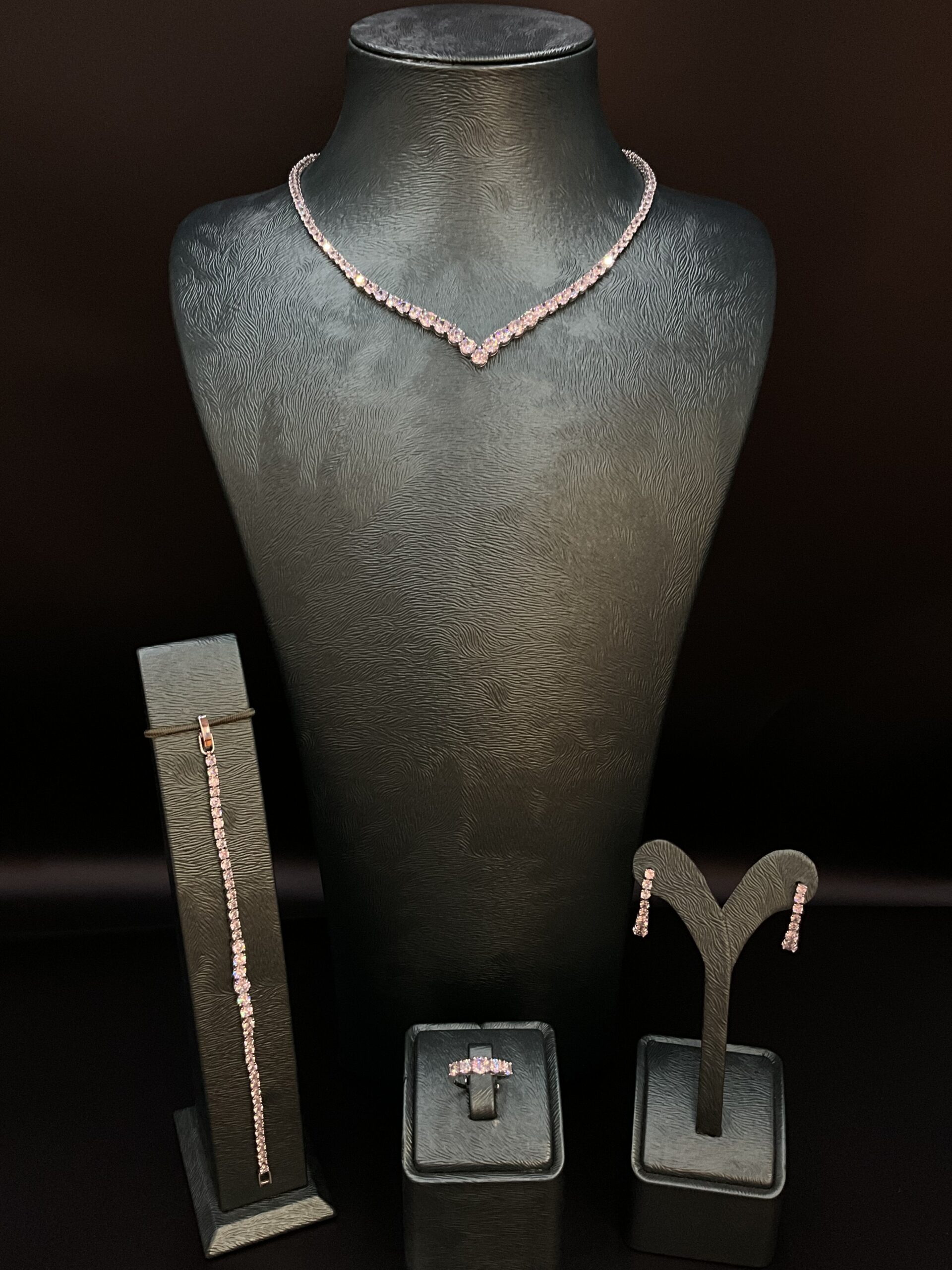 تتضمن المجموعة: قلادة، أقراط، خاتم، وسوار