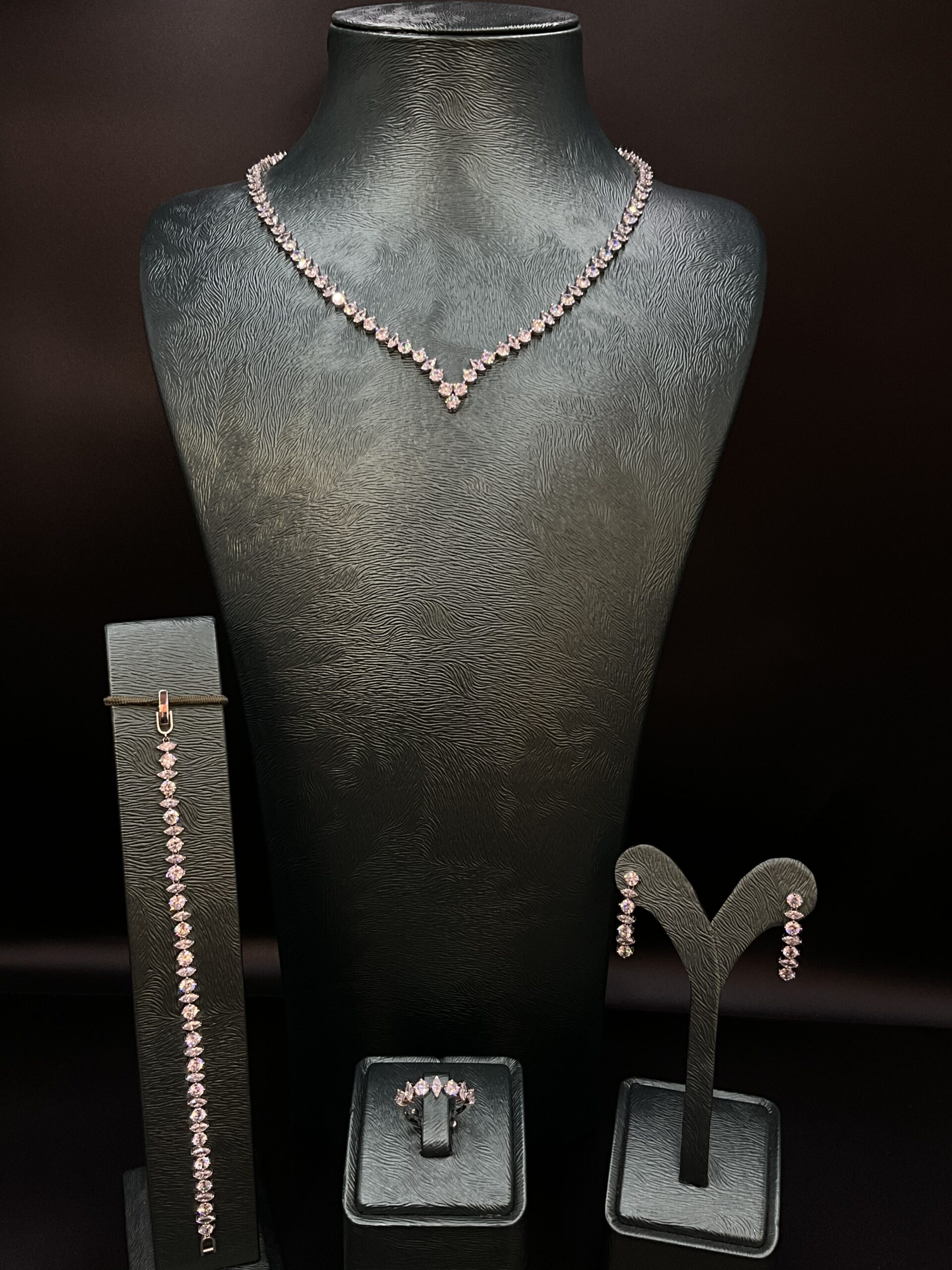 Set includes: Necklace, earrings, ring, and bracelet